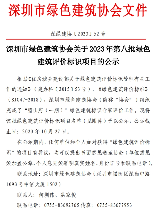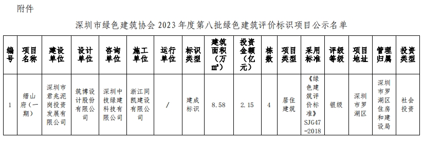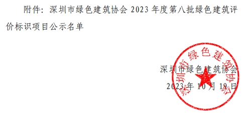 深圳市绿色建筑协会关于2023年第八批绿色建筑评价标识项目的公示