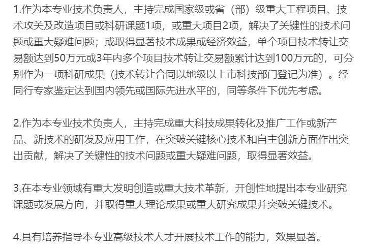 根据《广东省建筑工程技术人才职称评价改革实施方案》(粤人社规【2019】33号)的具体要求,正高级工程师申报条件如下: