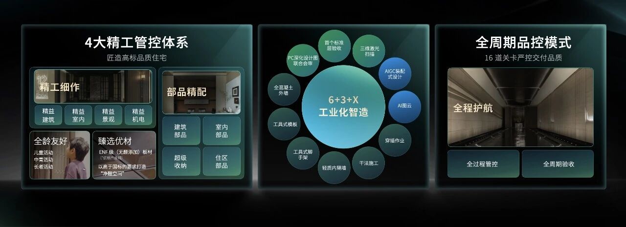 招商蛇口围绕客户最核心的居住体验,从工程、部品、场地到材料,构建了覆盖建筑生命周期的品质管控体系,从臻选优材到全龄友好,招商蛇口用六大技术模块建造品控体系,确保每一寸空间都经得起推敲,每一处细节都传递匠心温度。