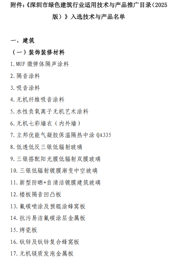《深圳市绿色建筑行业适用技术与产品推广目录(2025 版)》入选技术与产品名单公告暨产品技术宣传彩页的征集通知