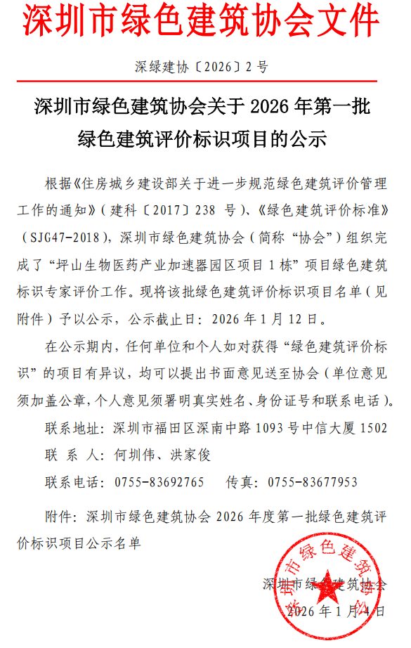 上一条:深圳市绿色建筑协会关于2026年第一批绿色建筑评价标识项目的公告
