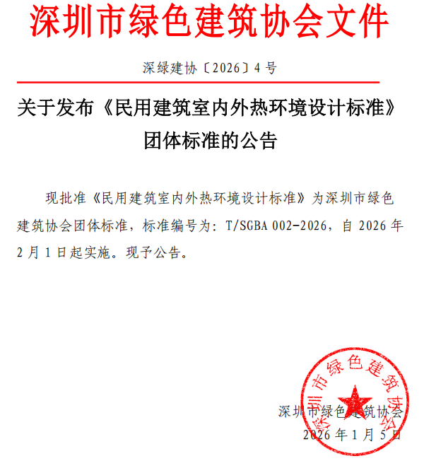 关于发布《民用建筑室内外热环境设计标准》团体标准的公告