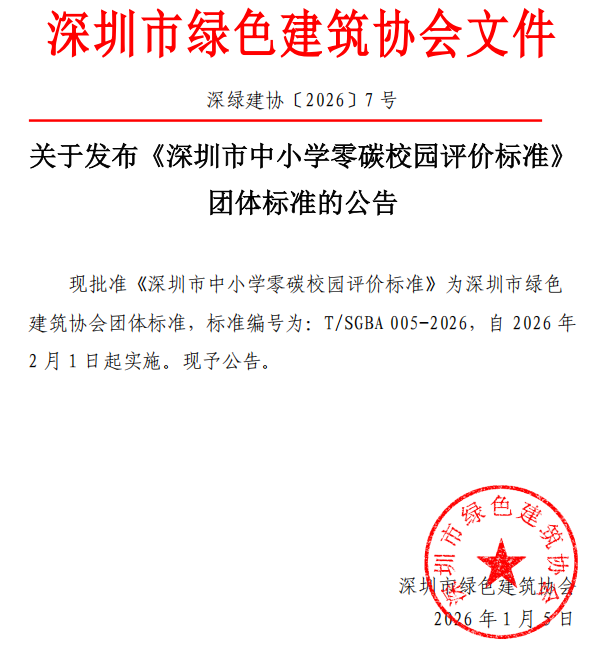关于发布《深圳市中小学零碳校园评价标准》团体标准的公告