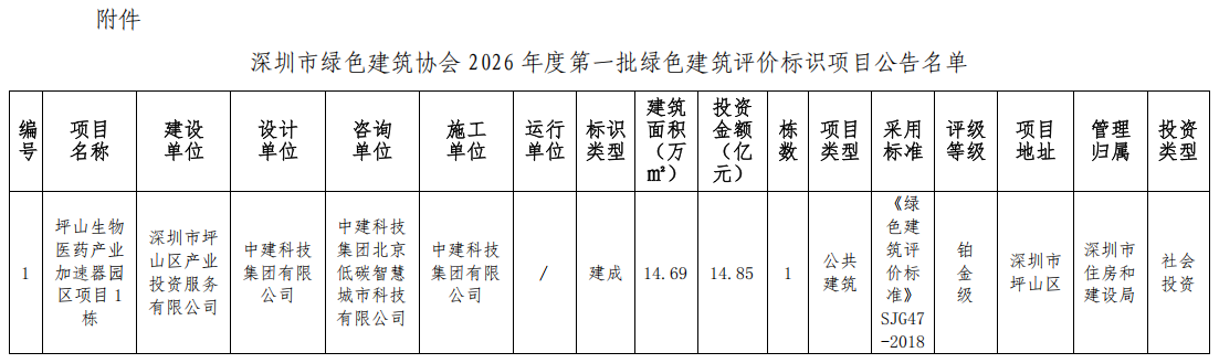 深圳市绿色建筑协会关于2026年第一批绿色建筑评价标识项目的公告