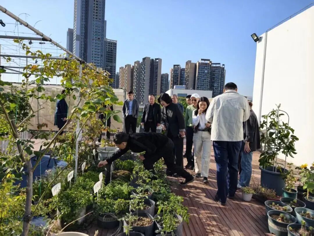 与会代表参观海卓生物屋顶农场,现场采摘品尝可食用景观植物。