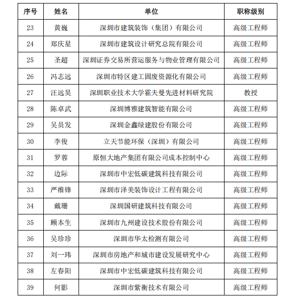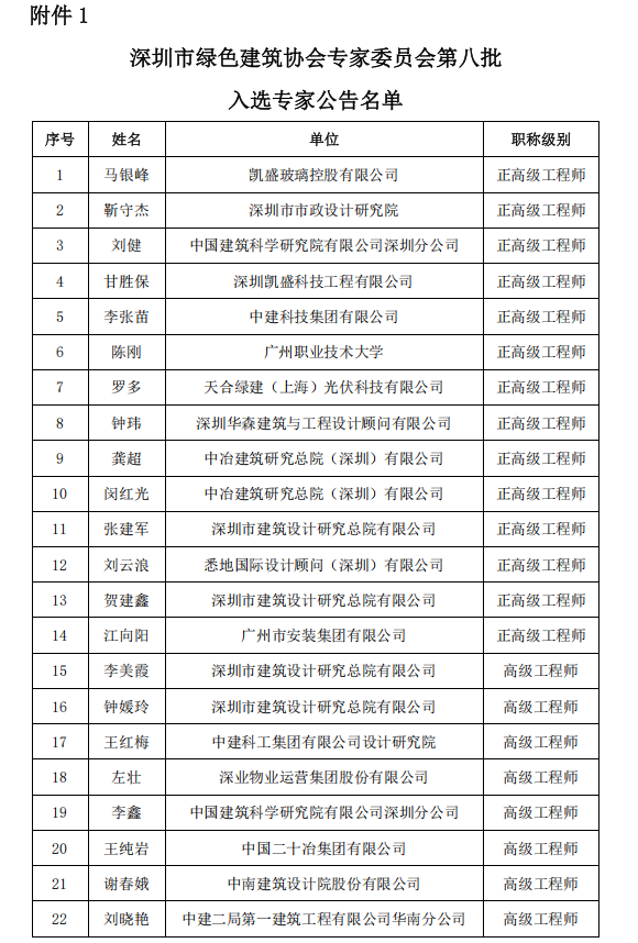 深圳市绿色建筑协会第八批专家委员会及第二批青年学组入选名单公告