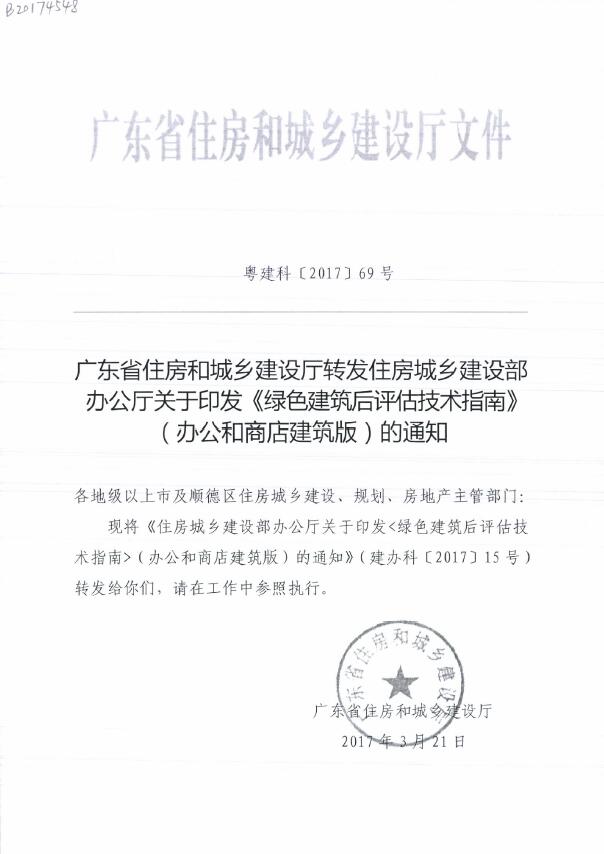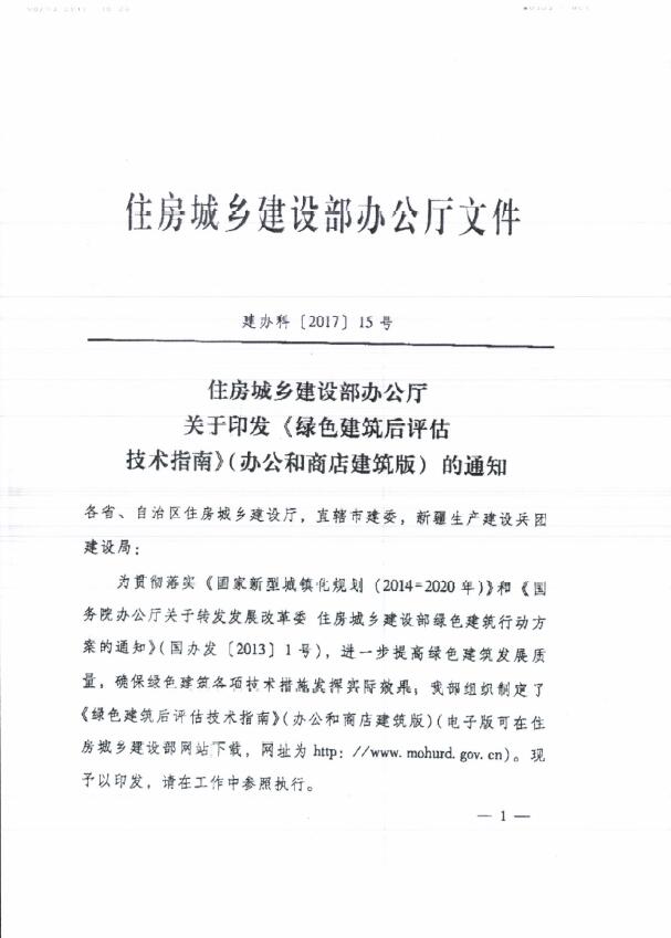 转住建部关于印发《绿色建筑后评估技术指南》(办公和商店建筑版)的通知