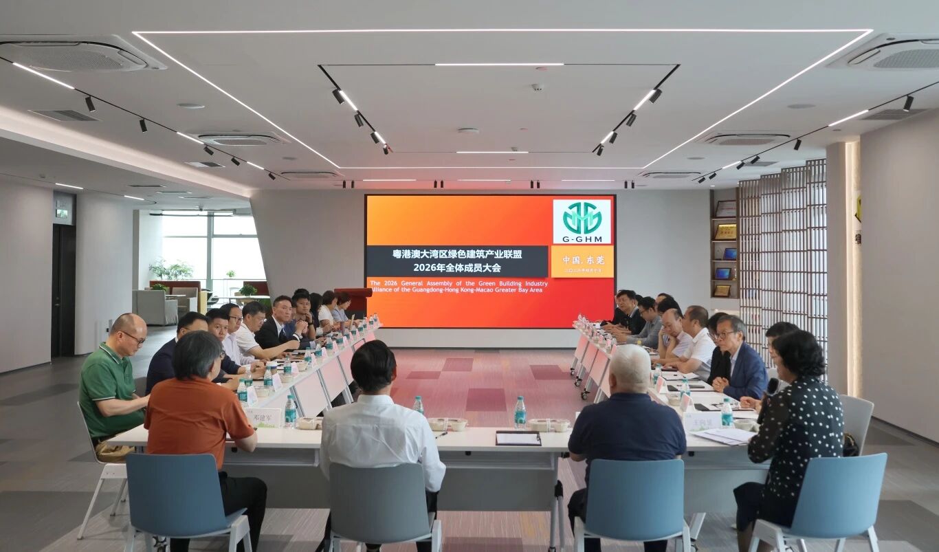4月10日下午,粤港澳大湾区绿色建筑产业联盟2026年全体成员大会在东莞隆重召开。来自大湾区绿色建筑相关行业组织的会长、秘书长和成员单位代表们齐聚一堂,共议湾区绿色建筑高质量发展。