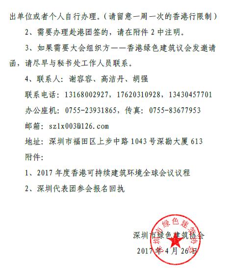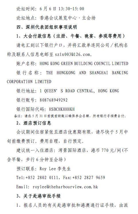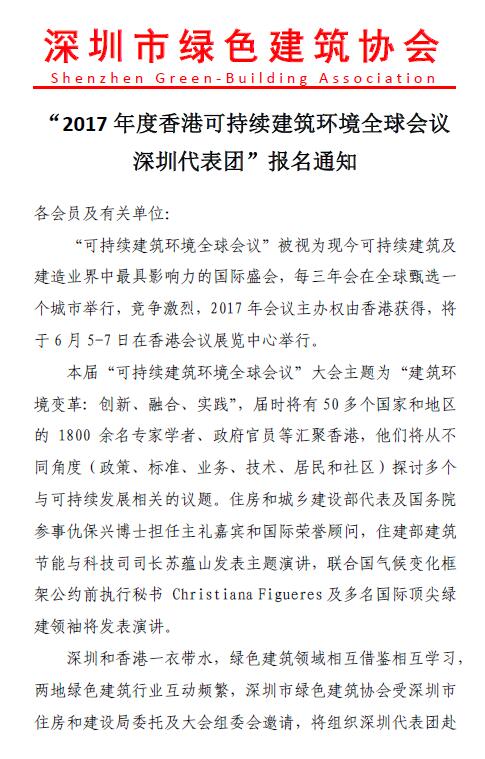 “香港可持续建筑环境全球会议深圳代表团”报名通知