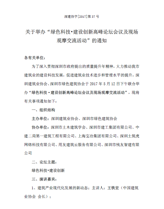 关于举办“绿色科技•建设创新高峰论坛会议及现场观摩交流活动”的通知