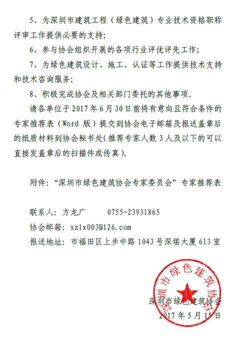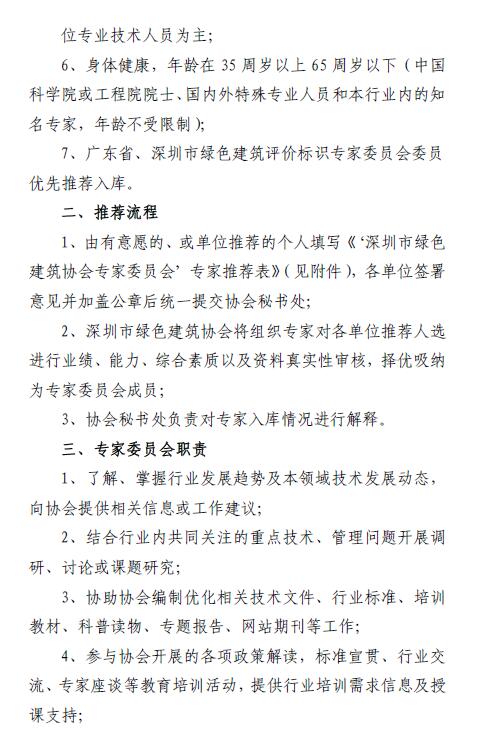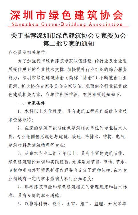 关于推荐深圳市绿色建筑协会专家委员会第二批专家的通知