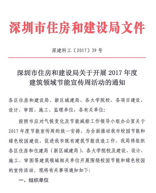 转:深圳市住房和建设局关于开展2017年度建筑领域节能宣传周的通知