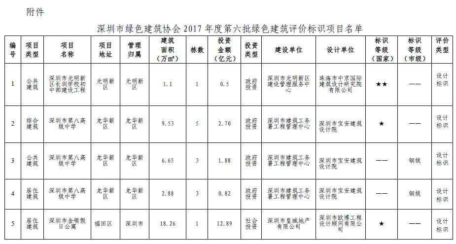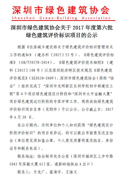 关于2017年度第六批绿色建筑评价标识项目的公示