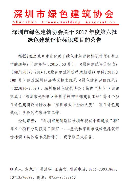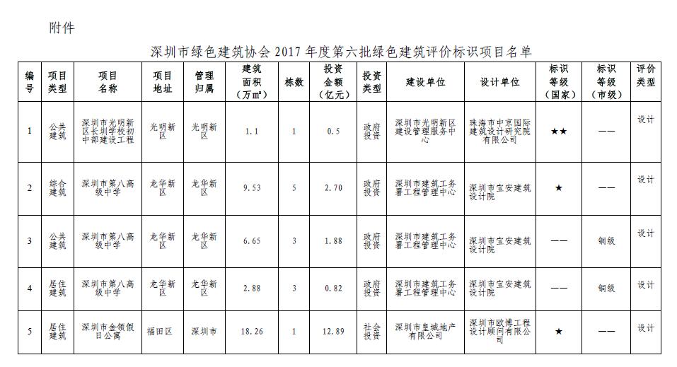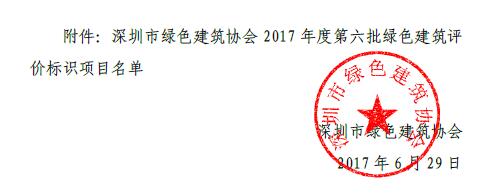 关于2017年度第六批绿色建筑评价标识项目的公告