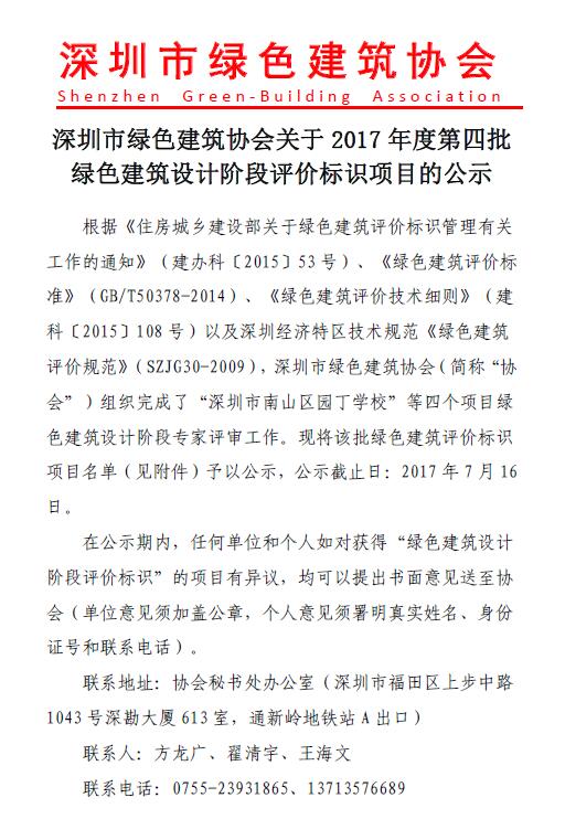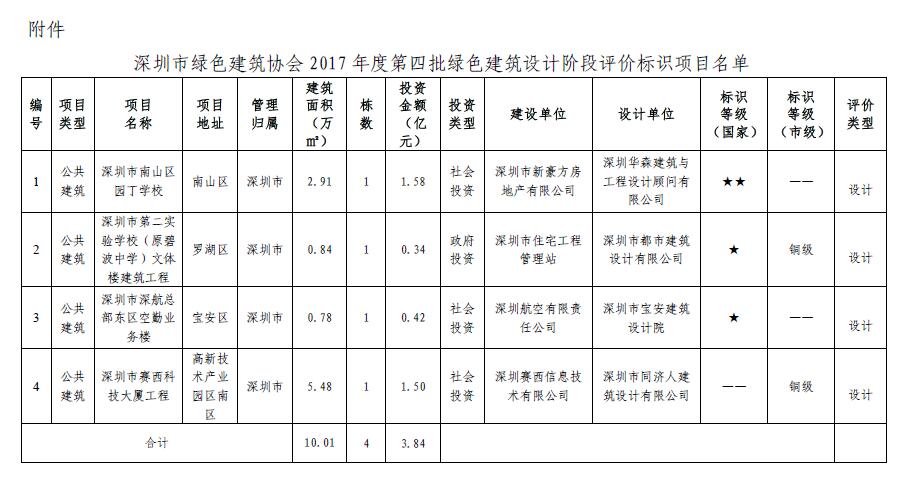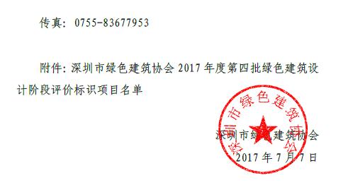 关于2017年度第四批绿色建筑设计阶段评价标识项目的公示