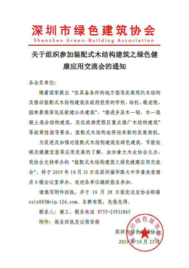 关于组织参加装配式木结构建筑之绿色健康应用交流会的通知