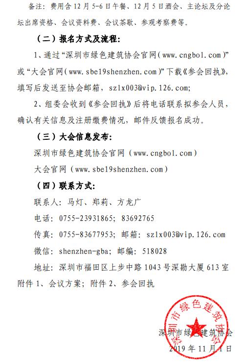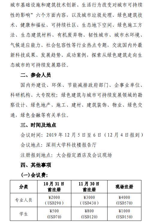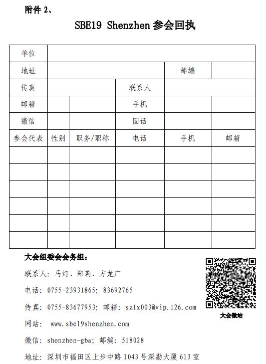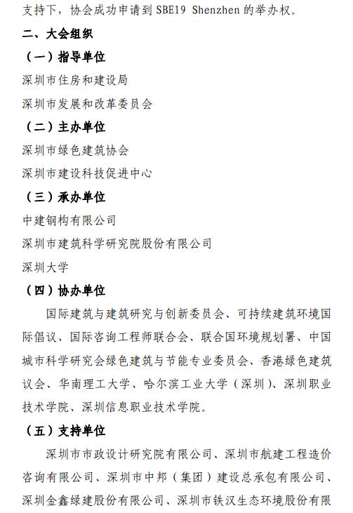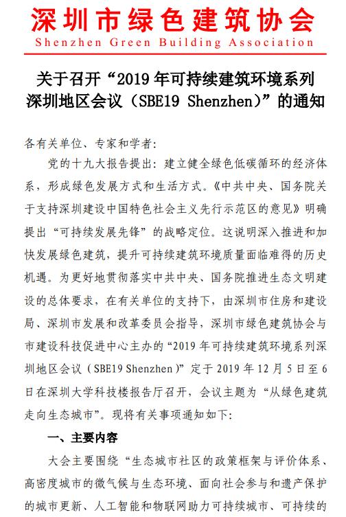 关于召开“2019年可持续建筑环境系列 深圳地区会议(SBE19 Shenzhen)”的通知