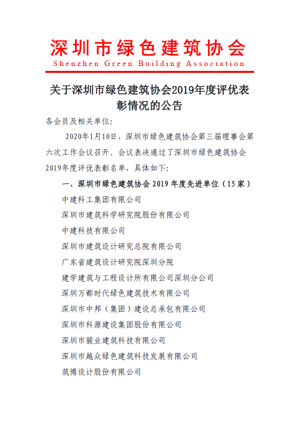 下一条:关于推荐深圳市绿色建筑协会专家委员会第五批专家的通知