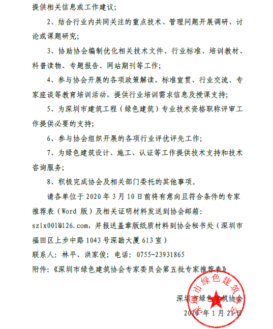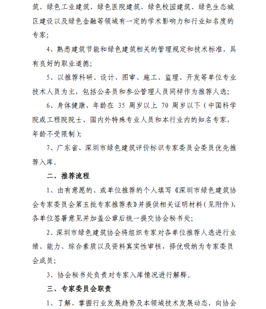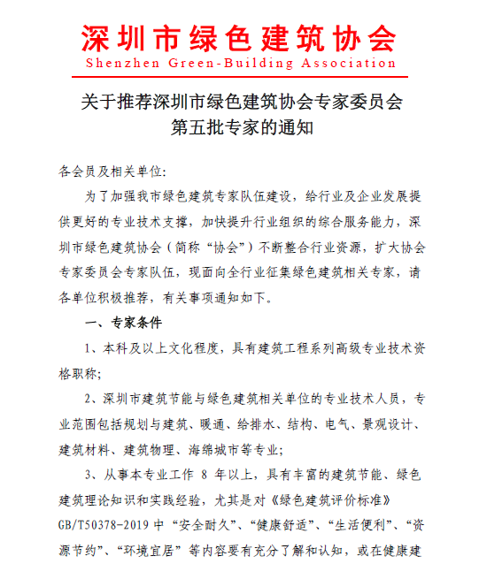 关于推荐深圳市绿色建筑协会专家委员会第五批专家的通知
