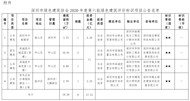 深圳市绿色建筑协会关于2020年度第六批绿色建筑评价标识项目的公告
